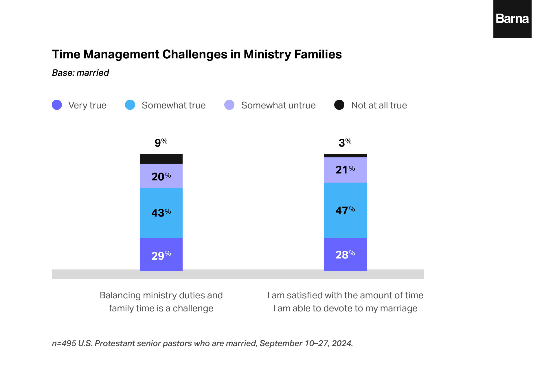 2024 Data: Barna conducted 551 interviews with Protestant senior pastors in the U.S. from September 10–17, 2024. Quotas were set to ensure representation by denomination, church size and region. Minimal statistical weighting was applied to maximize representation, and the sample error is +/- 3.8 at the 95% confidence interval.